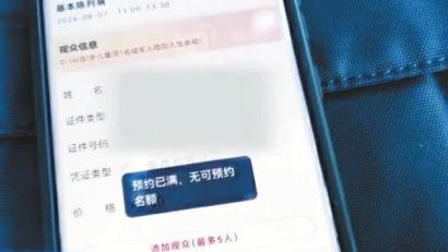 按照门票预约方式,一般是提前七天放票。然而,记者一连几天按时预约,按照步骤阅读“预约须知”,输入个人信息,到最后点击预约时却发现,刚才还显示有票的页面,已经“约满”了。