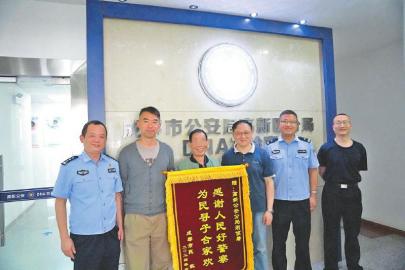 与儿子团圆后,张某向高新公安民警送去锦旗 高新公安供图