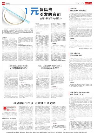 到店就餐少不了用到餐具在收取菜肴、酒水等项消费的同时还要再默认单独按每一名消费者使用一次性餐具包或消毒餐具的情况收取“餐具费”这样的做法合理吗?近日成都市金牛区法院审理了这样一起案例