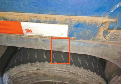 蓝色货车剐蹭的痕迹