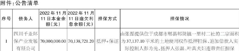 恒丰银行股份有限公司成都分行现公告通知公告清单中所列债务人及其担保人,从公告之日起立即向恒丰银行股份有限公司成都分行履行主债权合同及担保合同约定的偿付义务或相应的担保责任。