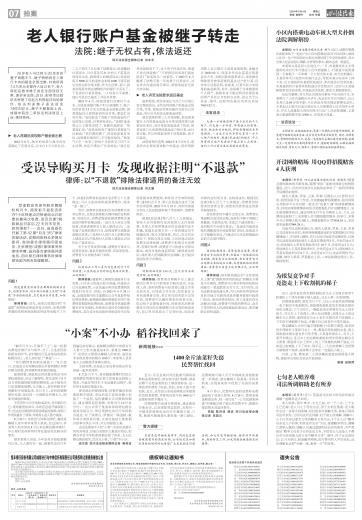四川法治报全媒体记者 刘冰玉 76岁老人与比其小20余岁的妻子再婚不久继子悄悄将老人银行卡内的基金全部出售并将所得7.4万余元全部存入自己名下老人得知后要求继子返还全部钱款无果