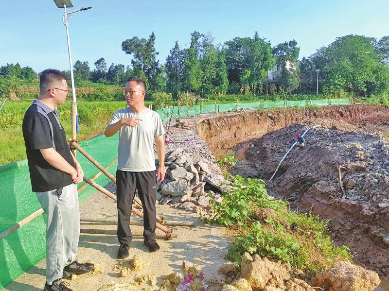 8月6日,罗哲哲(右)和高翔到红花河岸边查看施工情况