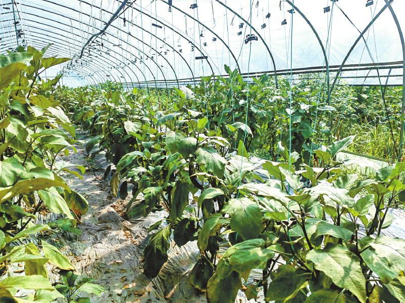“2016年,我们引进广安惠民农机农艺专业合作社,建成了130余亩蔬菜基地,采取‘合作社+基地+农户’的经营模式,每年能收入7万余元的土地租金和2万余元的保底分红,还能提供30多个就业岗位。”在蔬菜基地的温室大棚中,省委政法委驻龙孔村工作人员高翔拨开茂盛的叶片,向记者展示已经长得比手掌还长的大棚紫红长茄。