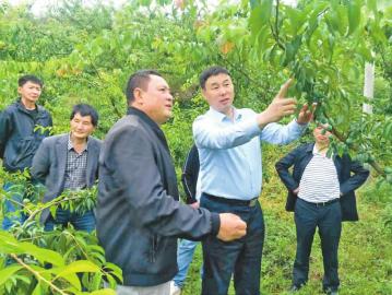 王千军(前排右一)组织帮扶队员和致富带头人赴仁寿县新品种澳洲李种植产业基地考察调研