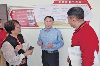 2.铁岭县法院腰堡法庭“老裴调解工作室”的“老裴”裴立刚向记者介绍工作
