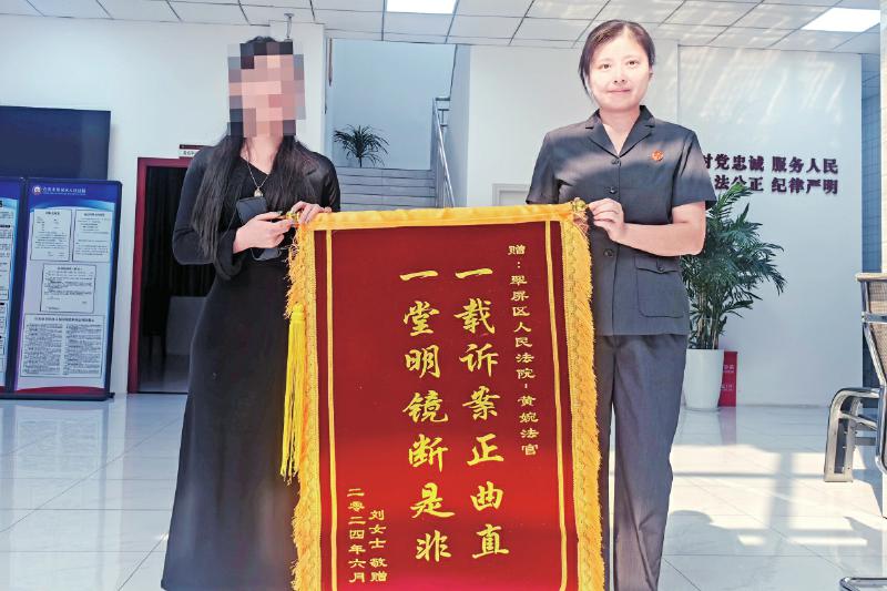 刘女士向宜宾市翠屏区法院安阜法庭送去锦旗