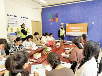 近日,成都交警十四分局民警走进辖区幼儿园,为20余名教职工上了一堂交通安全课,进一步推动校园交通安全宣传工作,提升辖区学校教职工群体的交通安全知识水平和宣讲能力,把教师队伍培训成为学生交通安全“管理员”和文明交通“宣传员”。