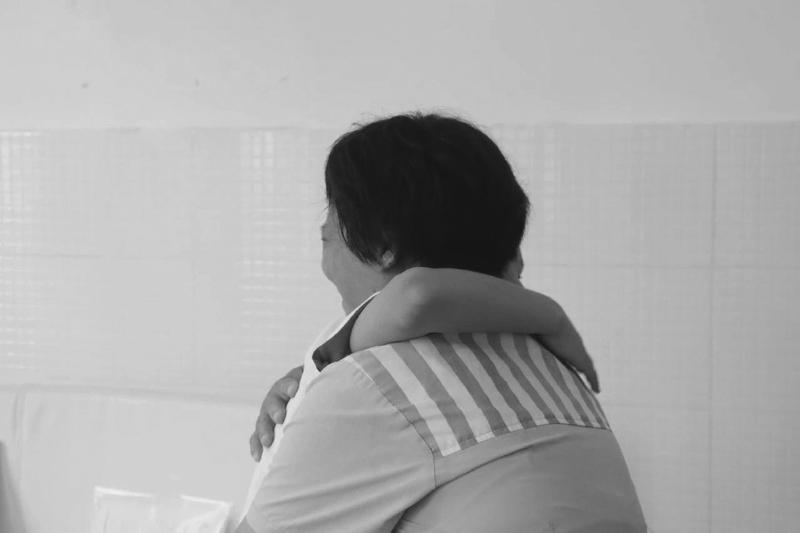 “咔哒”一声,亲情帮教室的门缓缓打开,王欣猛然回过神来,哭着快步走上前去紧紧抱住儿子,泪水夺眶而出,千言万语汇成一句话:“儿子,对不起!”曦曦也抱住了妈妈,轻拍着妈妈的背,说道:“妈妈不哭,妈妈我在。”当泪水渐渐止住,曦曦在妈妈怀里诉说着这些年来的思念。