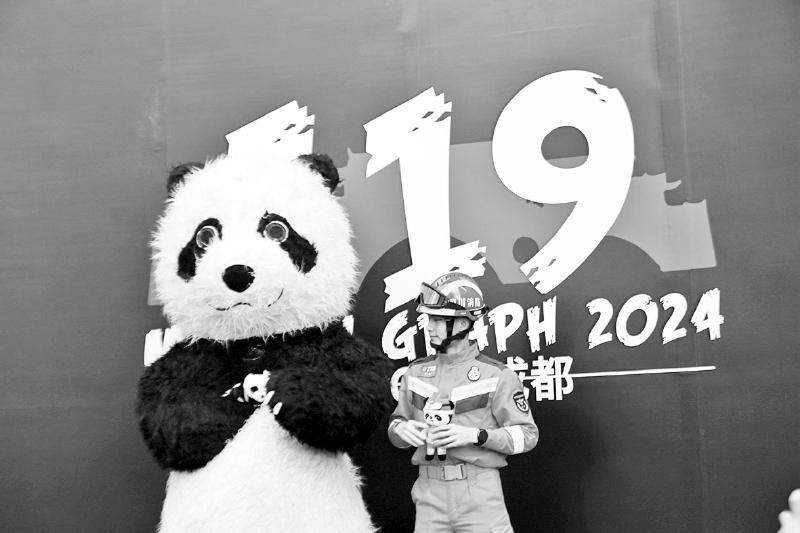 8日上午,作为成都的地标之一,春熙路的爬墙大熊猫换新装:戴上装着黑色灯筒的消防头盔,背着橙色的空气呼吸器,还装备了对讲机。从一只普通的大熊猫摇身一变,成为“消防大熊猫”。当日,四川省暨成都市消防宣传月活动启动仪式在成都市红星路步行广场举行。活动现场充满消防元素,户外大屏循环播放消防宣传内容,著名地标“爬墙熊猫”穿上了消防服装。启动仪式上,参会人员观看了全国消防宣传月启动仪式,现场连线了成都、遂宁两地常态化公益培训点位;展示了成都119路主题消防公交车的运行情况,宣布成都地铁消防主题列车正式发车,为百年春熙消防嘉年华主题街区开街。