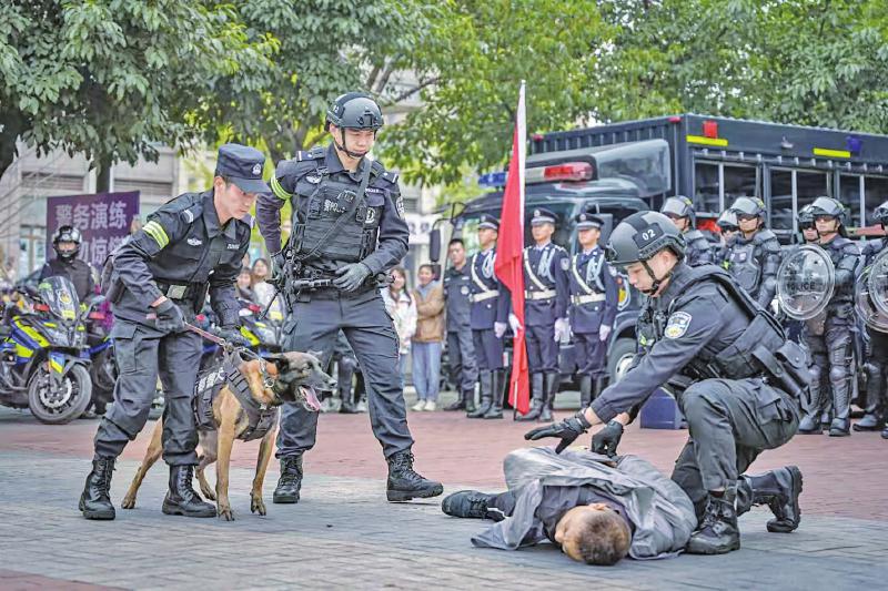 近日,成都市公安局新都区分局大丰北派出所联合该局特巡警大队在辖区大丰街道高堆社区为市民们带来了一场别样的警民交流活动。大丰北派出所民警向现场市民详细介绍了派出所的各项职能,并针对反诈、防邪、禁毒等知识进行专题宣讲。特巡警大队快反中队、摩巡中队、警犬技术中队分别带来了警摩绕桩、警犬技术、模拟警情处置等警务技术项目的展演,赢得现场观演市民的阵阵喝彩。展演结束后,市民们纷纷上前合影留念,可爱的警犬和小朋友们亲密互动。