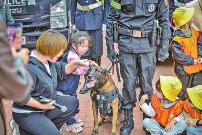 2.辖区居民与警犬互动