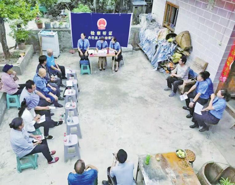 2021年6月11日,考虑到当事人身体残疾、行动不便,“墨尔多卫士”将公开听证会搬到当事人家门口举行 丹巴县检察院供图