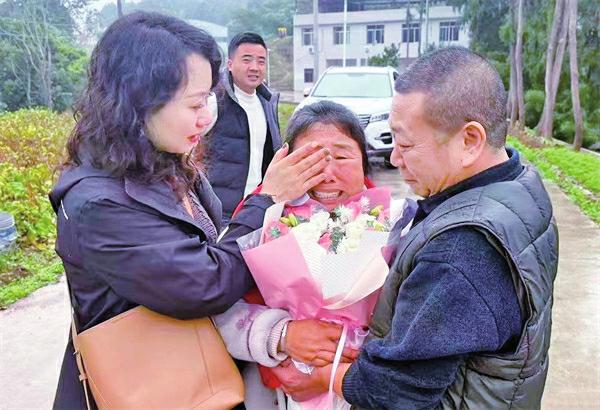杨中琼(中)被拐44年后与亲人团聚