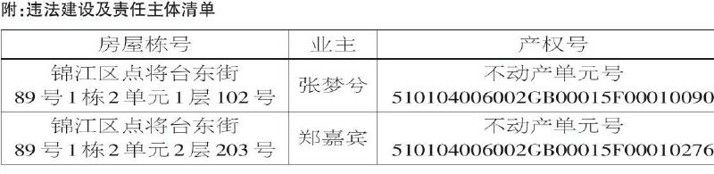 成都市锦江区点将台街89号上行汇锦小区违法建设责任主体(详情附清单):