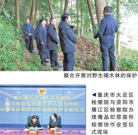 据介绍,保护基地包含野生楠木保护区、森林生态修复区、法治宣传教育区等三个功能区,建设一个检察官联络室即“大足区检察院、安岳县检察院生态检察官联络室”。联络室定期开展林区安全联合巡查,重点针对林区乱侵占、乱搭建、乱采挖、乱捕食“四乱”等问题和违法用火、盗伐、滥伐林木等违纪违法行为收集线索。此外,川渝七部门将每年定期在森林生态修复区开展补植绿化活动,引入民事公益诉讼赔偿金等用于基地保护。
