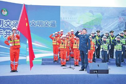12月2日,四川高速公安一分局会同多家单位在S3天府国际机场高速公路天府服务区开展交通安全宣讲节目表演等宣传活动