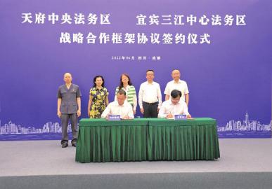 天府中央法务区、宜宾三江中心法务区签订战略合作框架协议