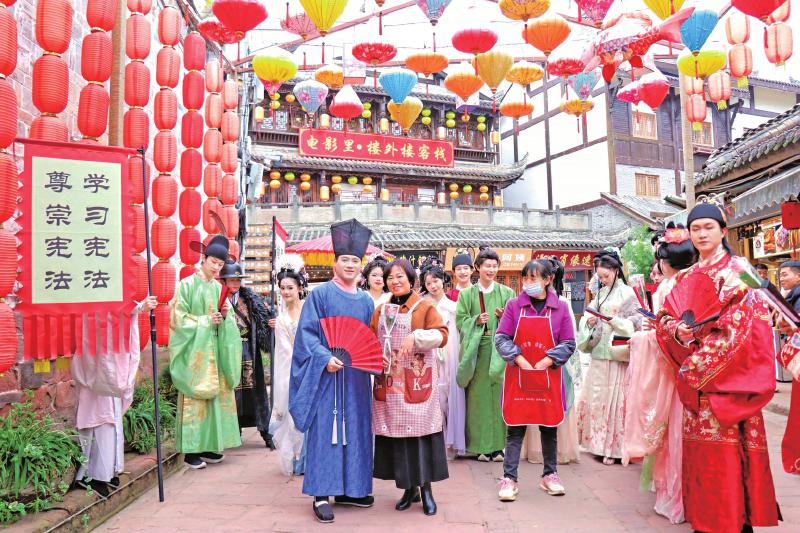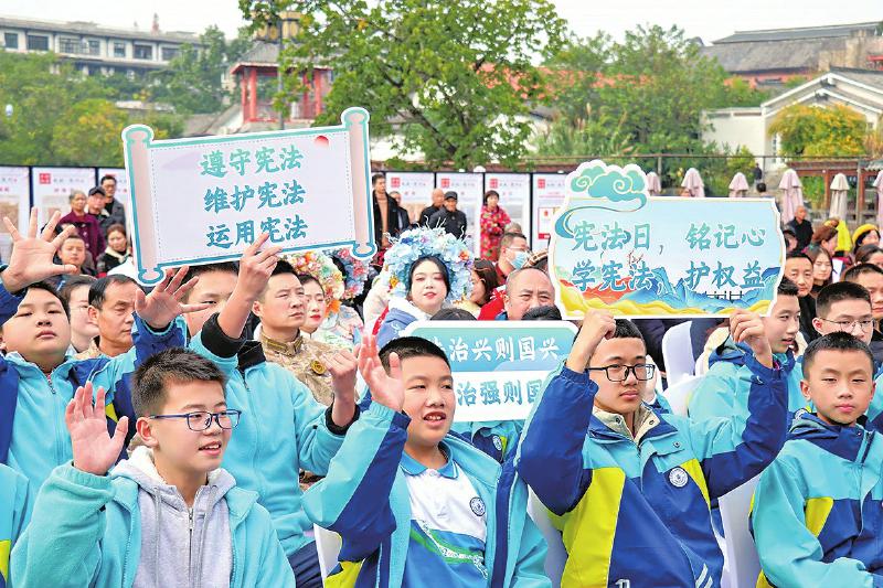 今年12月4日是第十一个国家宪法日。为深入学习宣传贯彻习近平法治思想,大力弘扬宪法精神,维护宪法权威,当天,由成都市龙泉驿区委依法治区办、区委宣传部、区司法局联合举办的2024年龙泉驿区“12· 4”国家宪法日——“就‘宪’在·‘驿’起传承!国风嘉年华”活动在洛带镇博客楼广场举行。