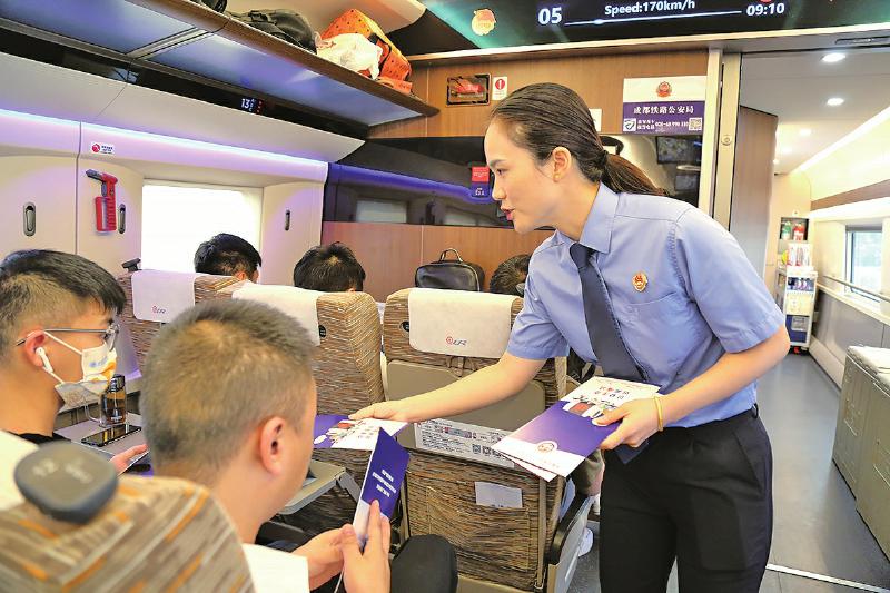 2.2023年6月26日,川检禁毒办案团队成员在川渝检察“6·26禁毒专列”上向乘客进行禁毒普法宣传