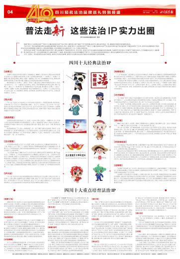 四川法治报全媒体记者 李季 首届“四川十大经典法治IP”“四川十大重点培育法治IP”自公布后便在线上线下掀起了学习的热潮连日来团队成员奔走一线继续将法律知识送到群众身边今年10月