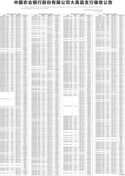 中国农业银行股份有限公司大英县支行催收公告