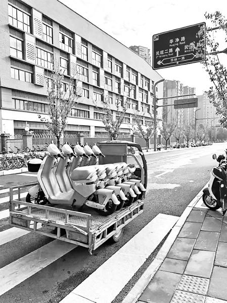 日前,记者在成都市成华区华林一路附近看到共享电动车企工作人员正在调度车辆