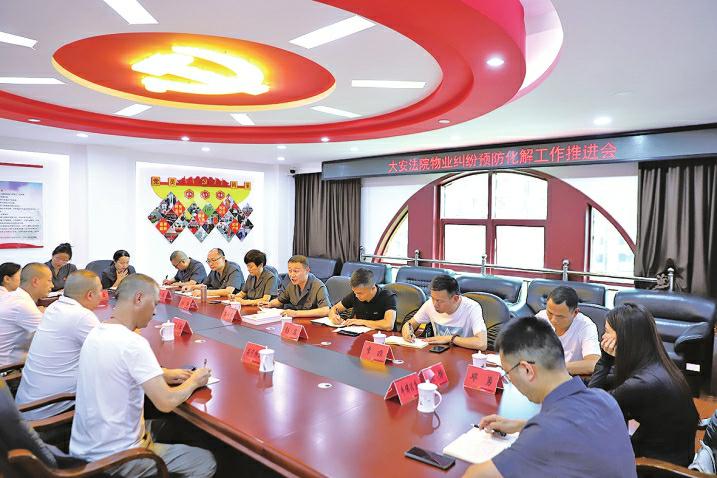 本报讯(肖姗 余捷 文/图)近日,自贡市大安区法院召开物业纠纷预防化解工作推进会,大安区住建局、物业公司代表参会。