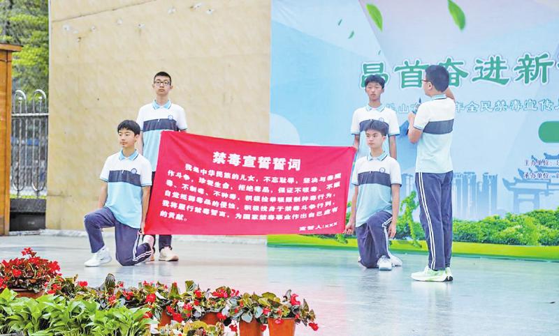 峨眉山市全民禁毒宣传月启动仪式上,学生代表宣誓