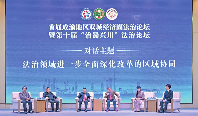 本报讯(四川法治报全媒体记者王晗阳 张磊 文/图)27日,首届成渝地区双城经济圈法治论坛暨第十届“治蜀兴川”法治论坛在广安举行,深入贯彻党的二十届三中全会精神,全面落实习近平法治思想和习近平总书记关于推动成渝地区双城经济圈建设系列重要指示精神,聚焦“成渝双圈”协同立法、执法、司法、守法中的理论和实践问题开展学术探讨、对策交流,为推动国家重大战略落地落实贡献法治力量。