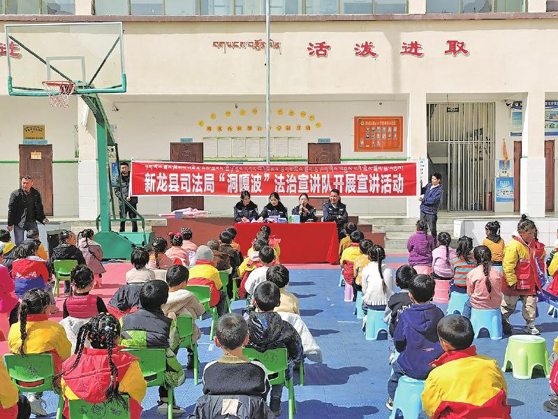 “同学们,不要做校园霸凌的霸凌者和旁观者,要勇敢地对校园霸凌说‘不’。”今年9月6日,“洞嘎波”法治宣传队走进甘孜县第二中学,开展“开学第一课”主题宣讲活动。队员们围绕预防校园欺凌等内容,通过分享真实案例和学生互动答疑,用法治力量为未成年人筑起坚实的保护屏障。这是“洞嘎波”法治宣传队全覆盖进行法治宣讲的一个缩影。