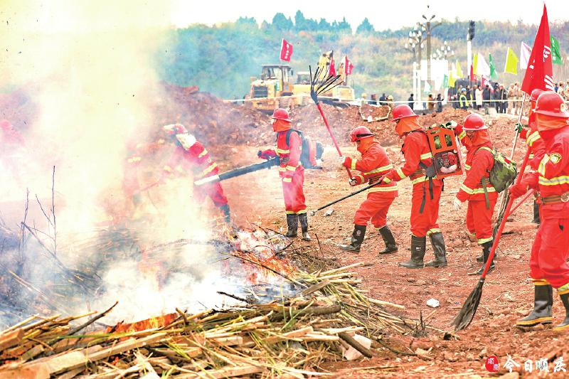 本报讯(何立民 文/图)近日,南充市2025年森林火灾应急实战演练举行。此次演练按照村、街道、区、市四级响应依次展开,共设初期火情处置、启动区级响应、疏散群众和火场救护、启动市级响应、清理余火和移交火场、响应终止和撤离归建等7个科目场景,旨在检验该市森林火灾应急处置能力,锤炼扑火队伍协同作战能力,提升森林火灾扑救水平,全力保障人民群众生命财产安全。