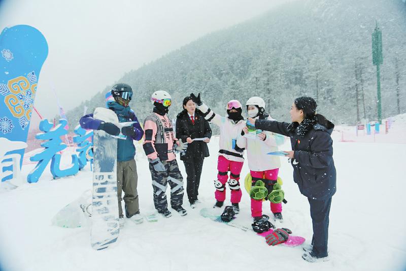 北京冬奥会以来,冰雪经济持续升温。目前,“冬游四川”消费季系列活动正在火热开展中,为助推我省文化强省旅游强省建设,结合人民法院工作实际,我省法院正在开展“冬游四川·司法同行”服务保障文旅融合发展活动。在汶川县羌人谷滑雪场,法官们开展了一场以“雪道上的交通规则”为主题的普法宣传活动,巧妙地将普法工作融入滑雪运动之中,为游客们送上一份特殊而实用的“法治礼包”。