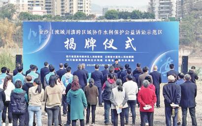 2024年3月22日,川滇两省首个跨区域协作水利保护公益诉讼示范区在四川省宜宾市叙州区横江镇金沙江边挂牌成立。