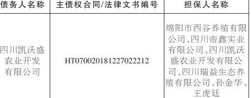 致:【绵阳市西谷养殖有限公司、四川帝鑫实业有限公司、四川凯沃盛农业开发有限公司、四川瑞益生态养殖有限公司、孙金华、王虎廷】【绵阳市商业银行股份有限公司游仙支行】对债务人【四川凯沃盛农业开发有限公司】享有的下列债权及担保合同项下的全部权利,已依法转让给【绵阳游仙富越高新技术产业发展有限责任公司】。【绵阳市商业银行股份有限公司游仙支行】特通知与该债权有关担保人及其相关当事人该等债权转让的事实。自公告之日起,请你等立即向【绵阳游仙富越高新技术产业发展有限责任公司】履行主债权合同及担保合同约定的还本付息义务或相应的担保责任。特此公告。