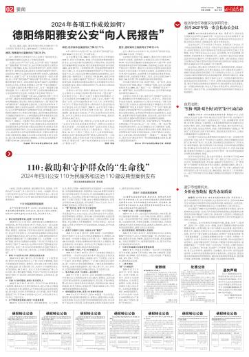 连日来德阳、绵阳、雅安等地公安机关相继举行“向人民报告”新闻发布会通报2024年工作情况及成效 德阳:刑事案件立案数同比下降28.8% 8日