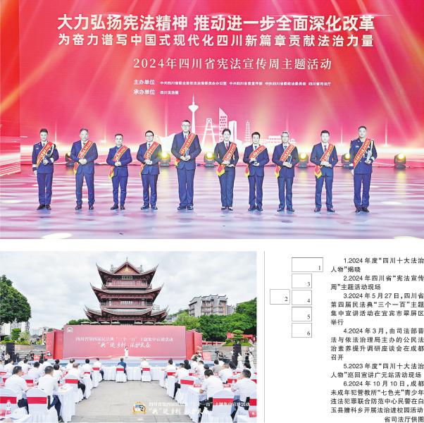 四川法治报全媒体记者 赵文 李季 2024年12月4日,是第十一个国家宪法日,12月1日至7日是第七个“宪法宣传周”。其间,一场场学“宪”活动在四川渐次铺开,实实在在的案例、喜闻乐见的方式、通俗易懂的语言,在群众中持续掀起了解法律、尊重法律、遵守法律、维护法律的高潮,让法治精神根植于心,外化于行。 党的二十大报告强调,深入开展法治宣传教育,增强全民法治观念。在四川,像“宪法宣传周”这样丰富多彩的法治宣传教育活动不胜枚举。回望过去一年,在省委省政府的坚强领导下,省司法厅深入推进“八五”普法规划,在普法针对性、实效性上下功夫,不断提升法治宣传教育质效,推动法治宣传教育从“有形覆盖”向“有效覆盖”转变,实现出“新”更入“心”。月月有主题“花式普法”做活法治宣传 岁末年初,让老百姓没有烦“薪”事、过上幸福年,是事关群众切身利益和社会和谐稳定的大事。2024年12月,伴随着全省根治欠薪行动的开展,“法治四川行”一月一主题活动也进入尾声。 2024年,是我省开展“法治四川行”一月一主题活动的第5个年头。如何更好发挥“互联网+法治宣传教育”,答好新时代法治宣传教育工作的新考卷?一年来,四川持续深化大普法工作格局,聚焦有特色、有亮点、有温度的法治宣传教育,提档升级“法治四川行”一月一主题活动,构建起“1+2+N”工作模式(1:开展1项主题法治宣传活动;2:制作2类法治宣传作品,即法治公益广告、“法博士”普法微课堂;N:运用N个平台开展集群宣传)。“3·15”国际消费者权益日、“4·15”全民国家安全教育日、5月民法典宣传月、“六五”环境日、12月“宪法宣传周”……一年来,45家省直部门(单位)联手开展37项主题活动,各类“花式普法”深受群众喜爱,实现“月月有主题,普法更精彩”。 2024年5月是《中华人民共和国民法典》施行以来的第四个“民法典宣传月”。紧扣优化法治化营商环境主题,我省在民法典宣传月开展了专项普法活动。“这次普法宣传太有用了,农家乐、民宿经营者最关注的问题有了专业解答,以后遇到类似情况能够依法处理。”谈起此次民法典宣传月活动,平武县银岭休闲山庄民宿经营者赵再义如是说。 公司是最重要的市场主体,也是营商环境建设的重要力量。2024年7月1日,新修订的《中华人民共和国公司法》正式实施。在优化法治化营商环境专项普法期间,憨态可掬的“法博士”联手省市场监管局第一时间推出普法微课堂《新公司法上线半个月!看注册资本登记管理制度如何利好营商环境》,带领市场主体一起学法。 2024年12月4日,四川省“宪法宣传周”主题活动如期举行。活动采取情景再现、现场讲述、法治演绎等多种形式,展现了我省弘扬宪法精神,传递法治力量,将各项事业全面纳入法治化轨道的生动实践和积极成效。活动实况线上观看人次达186.6万人次,在全省党政机关、企事业单位、社会组织等各行业各领域引发了强烈反响。“宪法宣传周”期间,成都东部新区走进吉利学院开展“宪法法治游园会”,自贡市自流井区为群众带来精心编排的法治情景剧,眉山发布《东坡法治故事轶事绘本》等读物学习“三苏”法治文化……一幕幕生动场景点燃群众学习宪法的热情。他们热烈讨论,积极宣讲,尊崇宪法的情感在心中激荡,汇聚成一股股法治力量,让宪法精神在巴蜀大地生根发芽。 “单一的、说教式的普法,群众提不起兴趣。法治宣传应该是有参与的、可获得的、生动的。”省司法厅普法与依法治理处相关负责人告诉记者,在全民普法工作中,我省各地纷纷使出“绝活”“实招”做活法治宣传。年年有宣讲“法治先锋”引领学法风尚 5月的翠云廊,一株株古柏巍然耸立、翠叶遮天。2024年5月23日,翠云廊下,一场精品宣讲在四川掀起了学法讲法的热潮。当天,两名2023年度“四川十大法治人物”以“法治力量守护绿水青山”为题,拉开了这一年“四川十大法治人物”巡回宣讲活动的序幕。 “翠云廊古柏认养活动引起热烈反响,至今仍述说着公安民警守卫古柏的初心和坚持。”省公安厅法制总队副总队长、二级高级警长周华梅以一篇25年前的报道《请你认养千年古柏》为线索,讲述了全省公安民警守护美丽四川生动画卷的故事。“良好的生态环境是广元最大的优势,是未来发展最重要的战略依托。”广元市昭化区委常委、政法委书记苏科年在宣讲中分享了广元市呵护翠云廊的力度。来自甘肃省陇南市的游客高莉现场驻足聆听了首场宣讲后对记者说:“来到翠云廊景区,正好碰上法治人物巡回宣讲活动,现场听了宣讲发现,四川古柏保护工作做得这么好,法治发挥了大作用。” 1场精品宣讲、5场集中宣讲、N场自主宣讲,2023年度“四川十大法治人物”巡回宣讲活动走过广元翠云廊、眉山东坡故里、绵阳两弹城,实现了21个市(州)全覆盖。巡回宣讲活动坚持以普法“小切口”展现大主题、以普法小故事折射大道理,因主题覆盖生态保护、教育医疗、营商环境、红色文化等群众生产生活的方方面面,受到广泛喜爱,实现了“线上+线下”覆盖人数超千万,在“润物无声”中传递了法治信仰,也激励着更多人投身于法治建设。 步入2024年,法治四川建设征程中再度涌现出一批杰出的法治先锋。在2024年四川省“宪法宣传周”主题活动上,10名致力于法治四川建设的老朋友以全新的身
