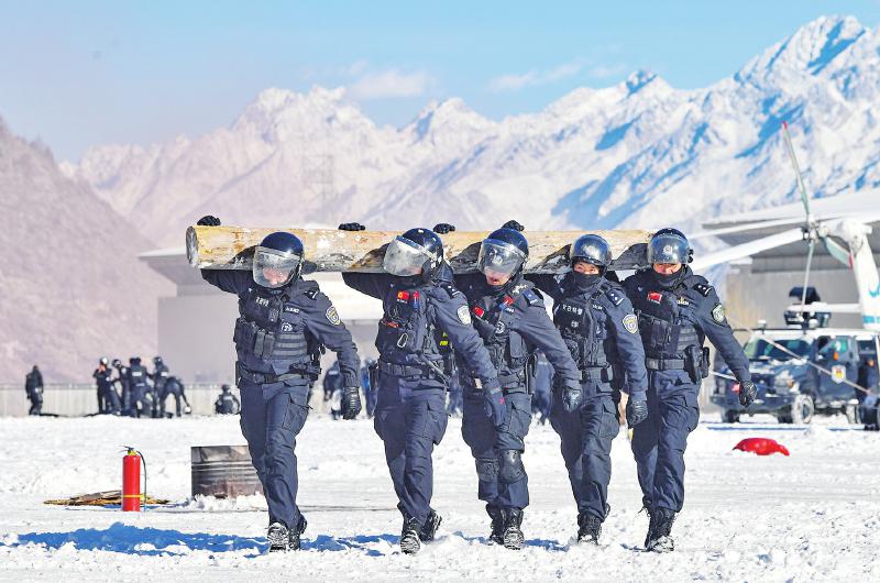 新年伊始,甘孜州公安局特警支队抓住高原气候寒冷的特点,组织开展重点难点科目训练,采取超负荷、超极限、超强度的措施,切实解决“训什么,怎么训,训到什么标准”的问题,着力培养一批精技能、懂教学、会组训的“行家里手”,切实提高“雪狼”特警队员的实战本领,确保随时拉得出、打得赢。