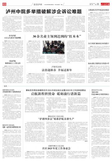 2月5日泸州中院副院长徐斌在全市优化营商环境大会上表示泸州中院将多措并举破解涉企诉讼相关难题以良好的法治化营商环境护航泸州经济高质量发展 具体措施包括坚持有案必立、有诉必理