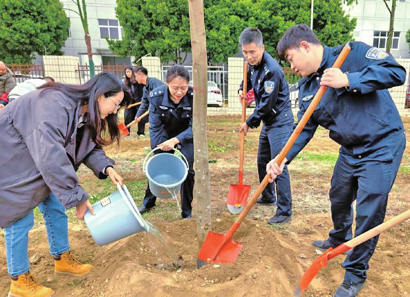 12日是第47个植树节。绵阳经开区法院组织干警志愿者开展植树活动,以实际行动践行绿色发展理念,为法治春天增添一抹亮色。 活动现场,干警们干劲十足,分组协作,挥锹铲土,扶苗填坑,浇水灌溉,齐心协力种下了象征希望和生命的树苗,为美丽家园增添新绿。 绵阳经开区法院将持续做实生态文明建设的参与者、推动者,以实际行动“扩绿、兴绿、护绿”,为构建美丽家园、实现人与自然和谐共生贡献更多司法智慧与力量。曾芹 范雨佳 赵银熙 文/图