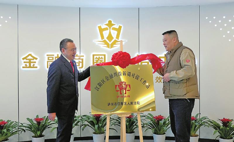3月5日,泸州市江阳区金融纠纷诉调对接工作站揭牌。江阳区委常委、政法委书记、社会工作部部长张志方,江阳区法院党组书记、院长王桂林,区委政法委、区法院相关负责人,以及11家金融机构代表参加揭牌仪式。
