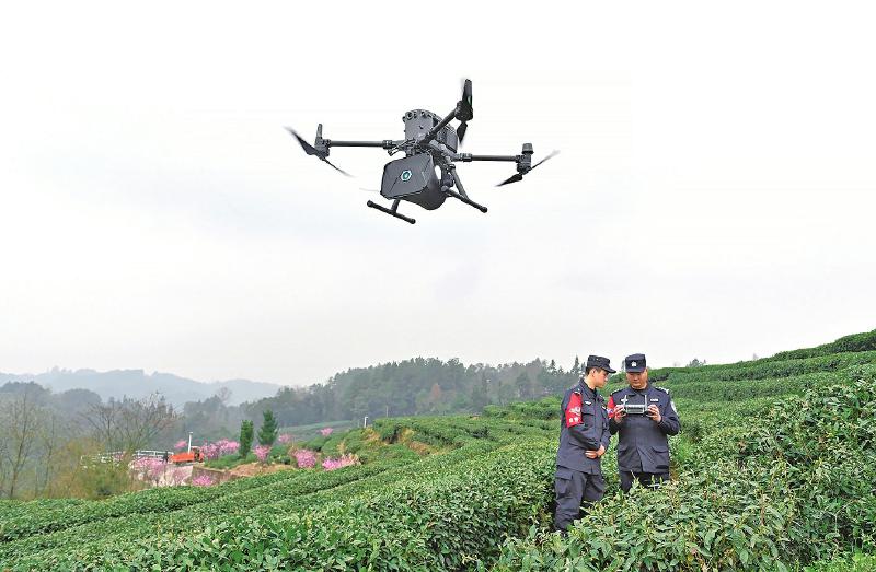 茶园翠色浓,雨雾溢茶香。春意盎然,唤醒了沉睡的茶树,作为我省重要茶叶产地的雅安市名山区迎来了茶叶采摘季。雅安市公安局名山区分局联合雅安市公安局特警支队,通过“民警+无人机+机器狗”的“空地一体化”巡防模式,依茶而动,抓实主动警务、靠前警务,全力护航茶产业发展。
