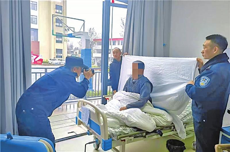 在民警的帮助下,郭大爷在病房里拍摄了身份证照片 邛崃公安供图