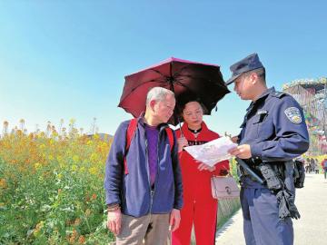 春日的成都新津区,到处是花的海洋。“西川供客眼,唯有此江郊”,是诗人杜甫对新津风光的最高评价。近日,在天府农博园的金黄花海中,除了如织的游人,还有一抹“警察蓝”穿梭其中。成都市公安局新津区分局借花季之机,将防骗知识融入花田美景,开办“花海反诈课堂”,为游客带来一场别样“安全之旅”的现场。 四川法治报全媒体记者 曾昌文 新津公安供图