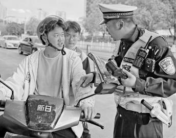 “同学,你多大了?你骑的这个是电动自行车哦!需要年满16周岁才可以骑行上路。”