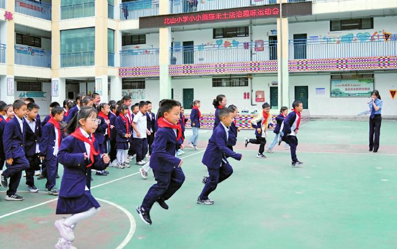 21日,平武县检察院“熊猫未士·闪闪红星”未检团队走进北山小学,举行了一场别开生面的网络安全法治宣传进校园活动,采取“法治+运动+童趣”的方式,将法律知识融入互动游戏,以创新实践播撒法治星火,为该校师生送上了丰盛的“法治大餐”。