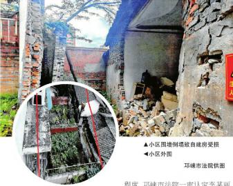 本报讯(四川法治报全媒体记者 曾昌文)一些老旧小区由于建筑物楼龄较长,围墙及外墙面已超过建筑物保修期,难免会出现松动、脱落甚至倒塌的情况。一旦因围墙倒塌给业主或者他人造成损害,损失的赔偿应该由谁承担?2024年初,邛崃市一起小区围墙倒塌致相邻自建房受损纠纷,经过邛崃市法院一审、成都中院二审,近日终于尘埃落定——小区物业公司与实际使用人各承担50%赔偿责任,分别赔偿受损邻居4万元。