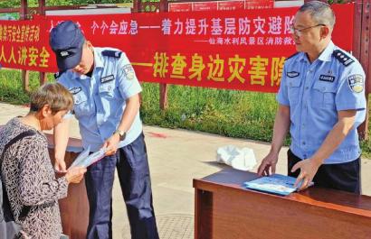 本报讯(赵晨 文/图)12日,绵阳市公安局仙海分局组织民辅警走进辖区内的七曲村场镇,开展防灾减灾日宣传活动,提高群众法治和防灾减灾意识,增强群众应对自然灾害能力。 活动中,民辅警通过发放防灾和法治宣传资料、现场解答群众相关咨询等方式,向群众宣讲了地震、火灾、洪水、泥石流等常见自然灾害的应对知识,并向现场群众开展了防范电信网络诈骗、禁毒防毒、防盗反扒等法律知识宣传。