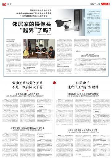四川法治报全媒体记者 周靖 熊勇 随着智能安防设备的普及越来越多家庭在自家门口安装智能摄像头 引发的涉隐私权纠纷也随之增多—— “他安的摄像头把我们出行都监控到