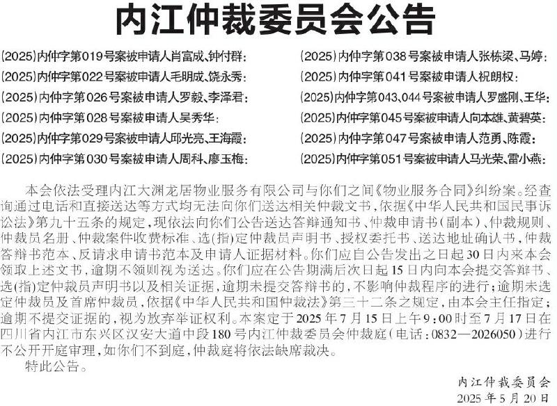 ·内江仲裁委员会公告